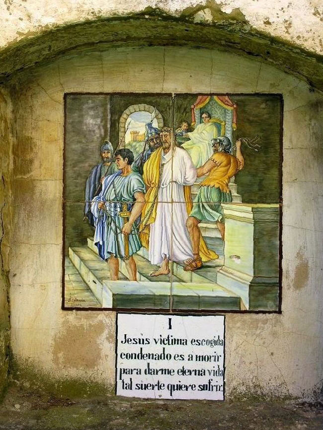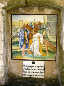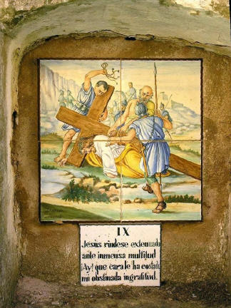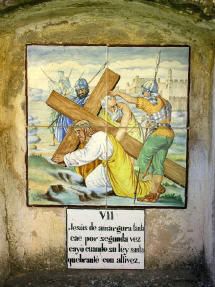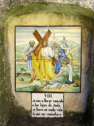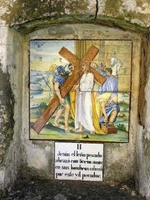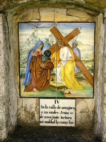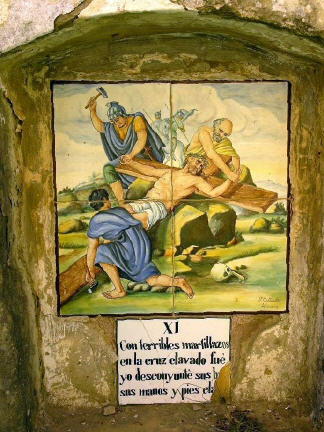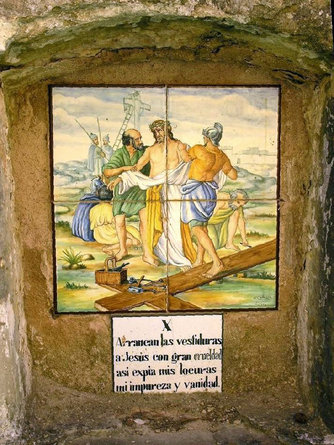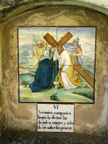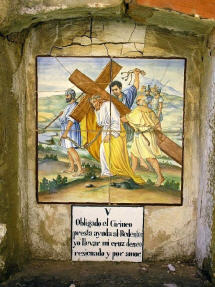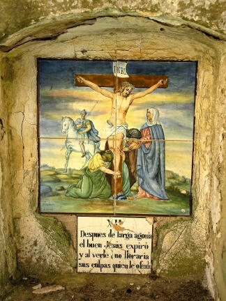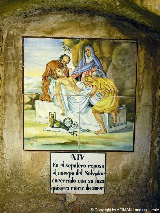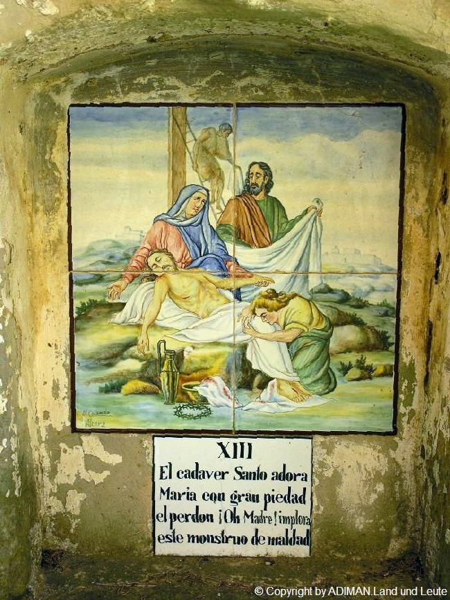 Alte handgemalte Keramiken zeigen den Leidensweg.