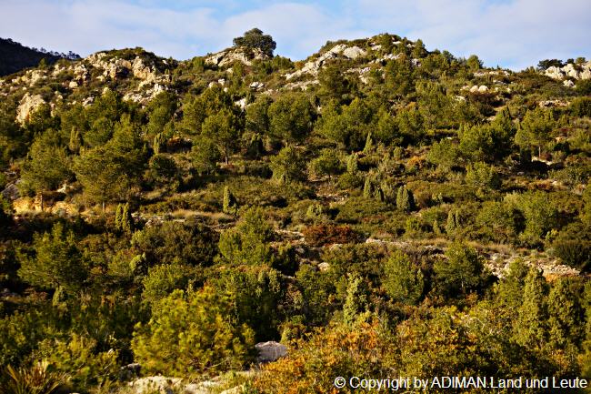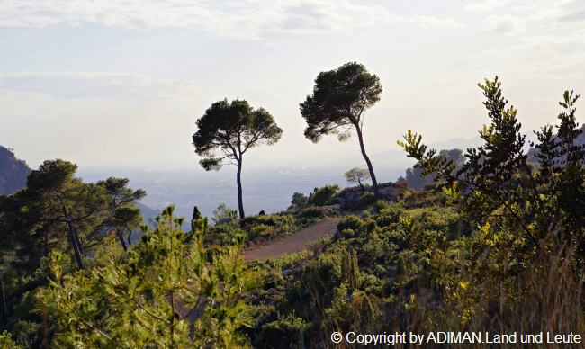 Das Desierto de las Palmas (Wüste der Palmen) umfasst 3.200 Hektar geschützte Landschaft. Vom Gipfel Pico Bartolo des Berges San Miguel (729 m) sieht man den Gipfel Montgó in Alicante und das Meeresschutzgebiet der Inseln Columbretes. Aber auch das Pflanzenschutzgebiet Agujas de Santa Águeda (540 m) bietet interessante Farbspiele dank einer fruchtbaren und vielfältigen Vegetation. Wüste - der überraschende Name stammt aus der Sprache der Mönche, wo "Desierto" so viel bedeutet wie Ort der Ruhe. Deshalb wählten die Karmeliter im 17. Jahrhundert dieses bewaldete Paradis, um dort ihr Kloster zu bauen. Leider hatte ein Erdstoss das ursprüngliche Konvent später zerstört, so dass die Mönche 1783 in ihren heutigen Sitz am Fuss des Gebietes umziehen mussten.
